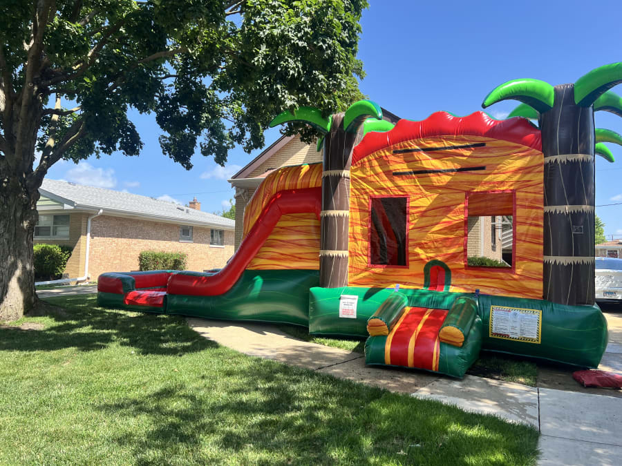 Our Tropical Combo Waterslide is ideal for backyard parties, school events, community gatherings, and more. It's easy to set up and will provide hours of entertainment for your guests. Book our Tropical Combo Waterslide today and turn your event into a tropical adventure!