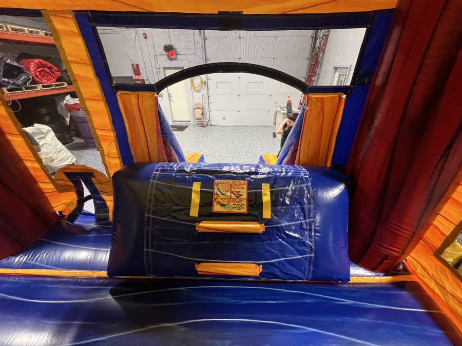 This colorful red and blue castle bouncy house is a sanitized, affordable moonwalk that has hours of fun for kids and adults. With a variety of fun of bouncing and sliding. Its greats for all ages, that can hold up to 14 kids at a time, and fits any theme, perfect for any event like birthday parties, school and church events and much more. This fire red and aqua blue marble castle is very popular so take advantage and rent this amazing inflatable today!