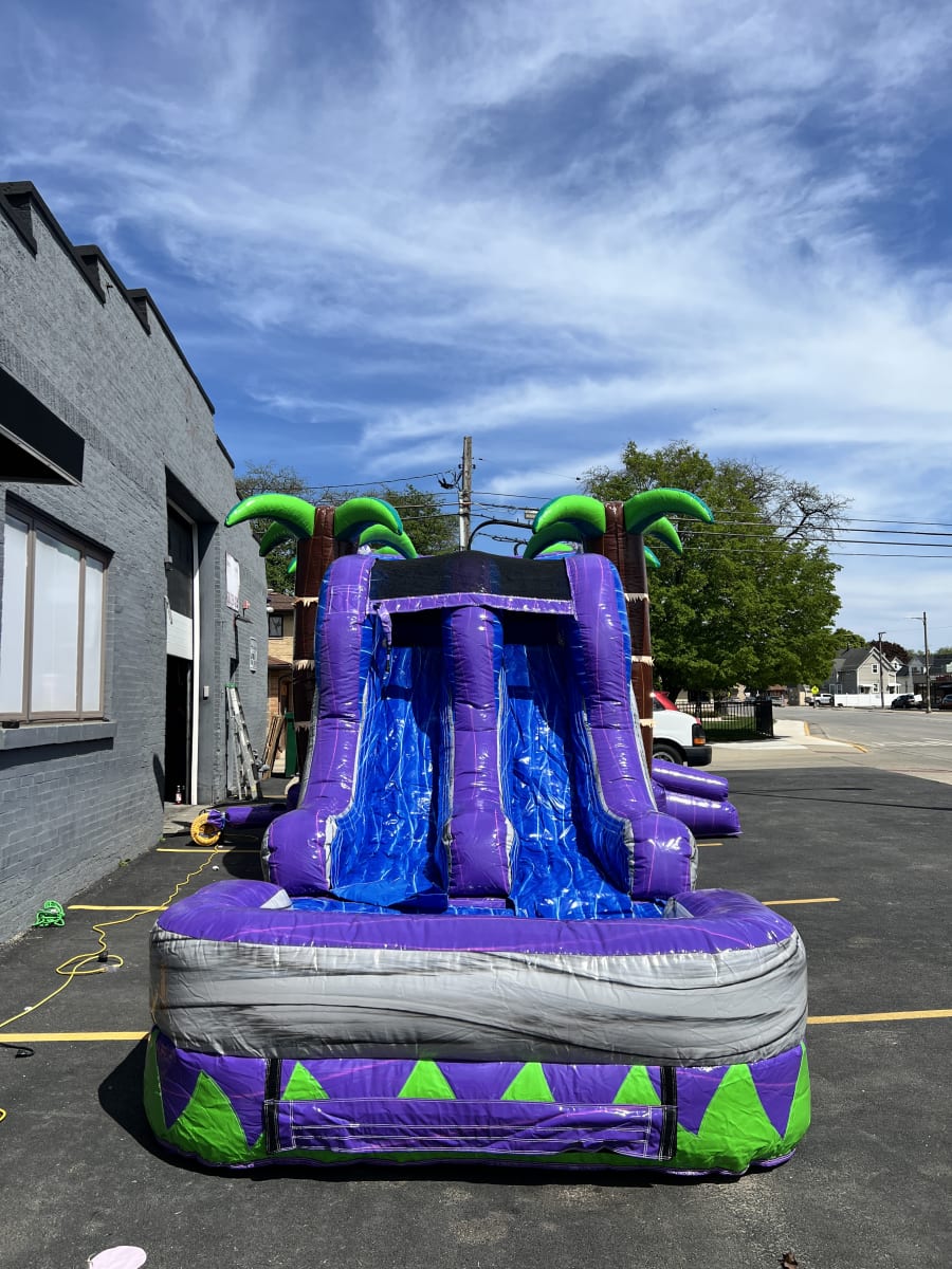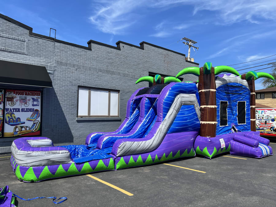 Looking to turn your next event into an unforgettable tropical paradise? Our Tropical Combo Waterslide is the perfect solution for summer parties, birthdays, family gatherings, or any outdoor celebration! This impressive 15ft by 35ft combo waterslide features not one, but two exhilarating slides that promise double the fun and excitement for guests of all ages.